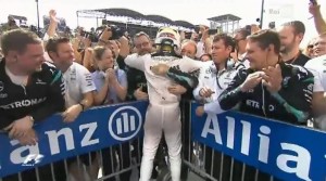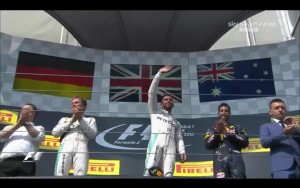 Nel giro 53 dei 70, con Hamilton bloccato dalla Haas di Esteban Gutierrez – che è costato al messicano un dito medio alzato quando l’inglese lha finalmente passato e una penalità di 5 secondi per aver ignorato le bandiere blu – Rosberg si era avvicinato a 0.6s, poi Hamilton ha riallungato, perdendo solo nel giro 62 per un bloccaggio alla curva 12.