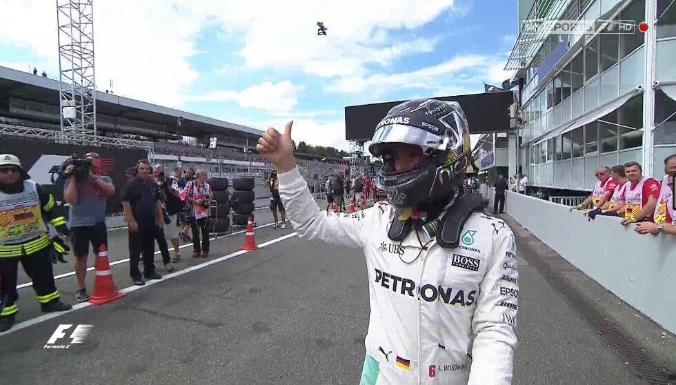 Dopo aver dominato in tutte le sessioni di libere, Nico Rosberg ha conquistato la 5° pole della stagione (27° in carriera) nel GP di Germania, la sua gara di casa. Dopo essere stato sopravanzato da Lewis Hamilton in Q1 e Q2, Rosberg ha dovuto abortire il primo run in Q3 richiamato ai box per un problema elettrico, con l’inglese che ha preso la testa della classifica con 6 decimi sui rivali. Tornato in pista per il suo primo vero run, Rosberg (sulle supersoft) ha fatto la pole provvisoria, poi diventata definitiva quando Hamilton ha commesso un errore al tornantino non riuscendo a migliorare il tempo.