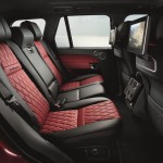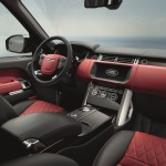Gli interni realizzati per questa versione, rendono la Range Rover ancor più attraente e raffinata. I sedili in pelle dal motivo a losanga con impunture a contrasto, disponibili in quattro combinazioni di colori esclusivi, si abbinano al cielo in pelle traforata Ebony e trasmettono un’immediata sensazione di lusso. Rivestimento Black Veneer per la plancia e i vani delle portiere, completato da una riga di finitura rossa su questi ultimi. Il comando rotativo della trasmissione, il pulsante start/stop ed i pedali presentano una finitura godronata. A sottolineare il carattere sportivo del veicolo, i paddle sono in colore rosso anodizzato (salvo quando l’interno è richiesto in colore Tan), e il manuale del veicolo è rilegato in pelle stampata a losanghe che richiama il motivo dei sedili.