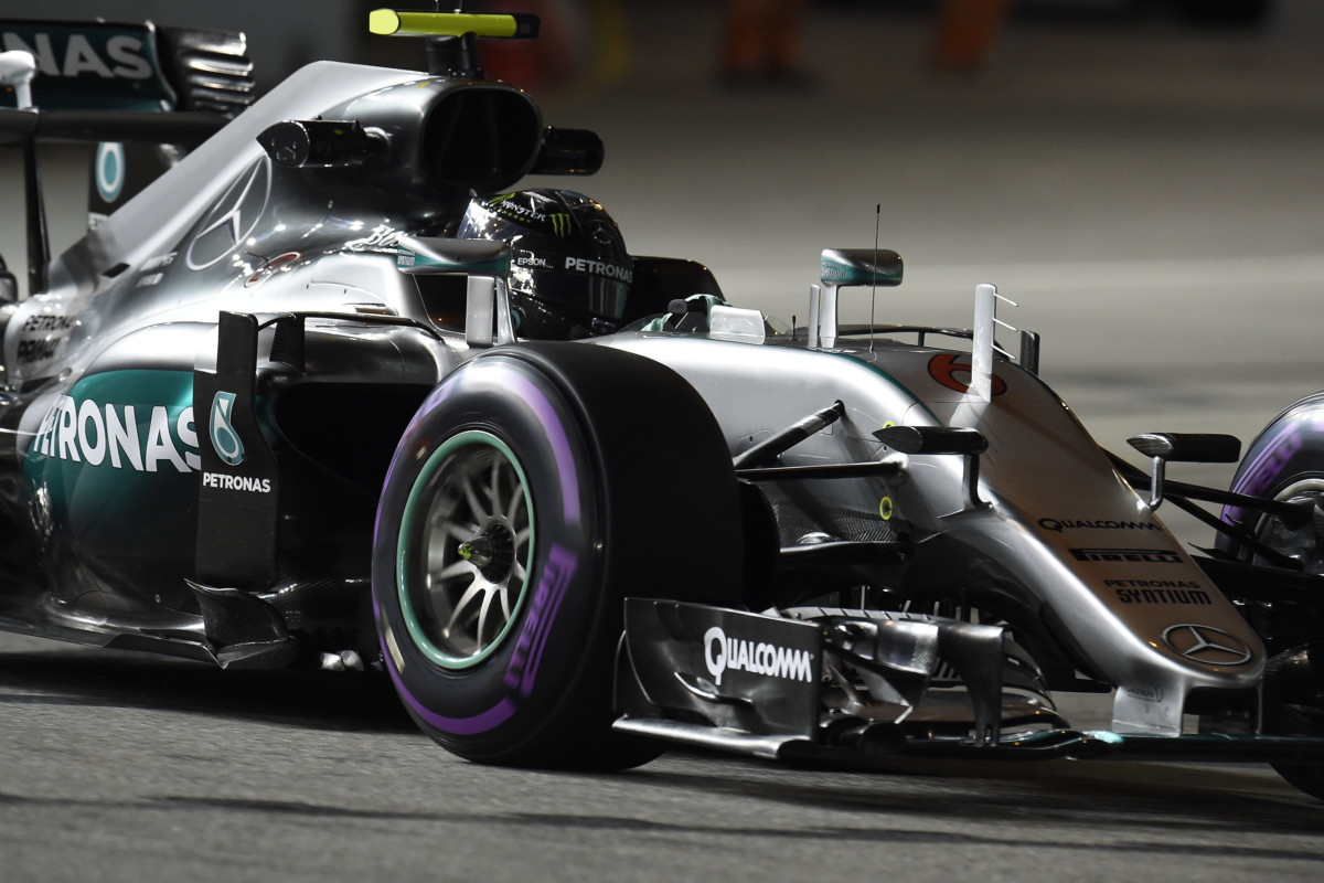 Il pilota della Mercedes Nico Rosberg ha conquistato la pole position usando i pneumatici ultrasoft, al termine di un’emozionante ora di qualifica sulle strade illuminate di Singapore. Il tempo del tedesco di 1m42.584s è il migliore mai registrato al Marina Bay dal debutto della gara nel 2008, e batte il precedente record di 1m42.841s segnato da Sebastian Vettel in qualifica nel 2013. Come previsto, le temperature della pista sono diminuite nel corso della sessione. La maggior parte dei