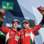 GTE-Pro. Nella classe GTE-Pro al via, con l’asfalto a quasi 50 gradi di temperatura, Davide Rigon sulla 488 numero 71 è riuscito a tenere la seconda posizione mentre Gianmaria “Gimmi” Bruni ha perso una piazza recuperandola poco dopo, quando la Ford numero 66 è stata costretta ad un lungo stop per far sistemare il sistema di refrigerazione dell’abitacolo. L’inizio del secondo stint ha visto un James Calado in grande spolvero, capace di superare Sam Bird dopo che con la strategia ai box la vettura 51 era riuscita a superare l’Aston Martin numero 97 del leader della classifica Darren Turner e del brasiliano Fernando Rees. Bird, dal canto suo, è scivolato addirittura in quarta posizione dietro l’Aston Martin che, forte di quasi dieci km/h di velocità in più in rettilineo, era praticamente imprendibile. Davanti intanto l’altra vettura britannica, la numero 95 di Marco Sorensen e Nicki Thiim, dominava indisturbata. A rimettere la vettura 71 in terza posizione ci hanno pensato il box di AF Corse, capace di gestire al meglio due situazioni di Full Course Yellow (quando le vetture sono costrette a procedere in pista a 80 km/h), e un Davide Rigon in ottima forma.