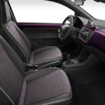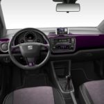 La tonalità Bismuth degli specchietti esterni ritorna nei dettagli interni, nelle bocchette dell’aria condizionata, nella cornice del sistema infotainment e nelle cuciture, e infine nei tappetini. I sedili in tonalità violetto sono rivestiti in Alcantara, denotando fattezze esclusive e ben rifinite. Il tettuccio è rivestito in un colore scuro, conferendo uno stile glamour alla vettura. I battitacco anteriori sono arricchiti dalla scritta “COSMOPOLITANlovesMii”. I dettagli interni cromati sono opachi, ad eccezione del logo SEAT sul volante.