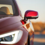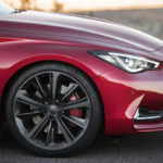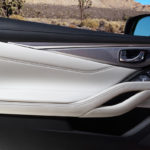 griglia) per bilanciare i requisiti di raffreddamento del motore con l’obiettivo di potenziare l’efficienza aerodinamica. In uso normale, le alette rimangono chiuse, aprendosi quando sono necessarie maggiori prestazioni. Gli specchietti laterali montati sulla porta accentuano l’assetto basso della Q60 e il look pulito da coupé e sono progettati per migliorare il flusso d’aria lungo i fianchi del veicolo, mantenendo un ampio angolo di visibilità posteriore per il conducente.