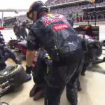 Ai piedi del podio l’unica Ferrari arrivata a fine gara, quella di Sebastian Vettel (a 43 secondi dal leader), con Kimi Raikkonen costretto al ritiro per la pistola rimasta attaccata durante la sosta ai box: il finlandese è ripartito ma, avvisato dal team, si è fermato in fondo alla pitlane, tornando poi indietro in retromarcia. A fine gara, i commissari hanno punito l’unsafe release con una multa di 5.000 euro perché “La macchina è stata rilasciata prima che tutti i meccanici avessero finito di montare correttamente tutte le ruote. Dato che la macchina non si è classificata, viene comminata solo una multa“. Una cosa che spiace, specie per i meccanici Ferrari e tutto il lavoro che fanno e non dimentichiamo la perfezione del pitstop precedente, in soli 2″2! Una gara molto movimentata ai box, visto anche quanto accaduto a Verstappen poco
