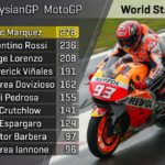 Dopo il 17° round della stagione, la classifica vede al primo posto sempre Marquez, già proclamato campione., con Rossi che recupera altri punti su Lorenzo mentre Dovizioso conquista il quinto posto.