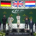 Sul podio con lui non poteva mancare il rivale numero uno, ovvero Nico Rosberg, che ha fatto una gara altrettanto perfetta, portando a casa il miglior risultato possibile per tenere aperta la lotta per il Titolo, che si deciderà tra due settimane ad Abu Dhabi: sono 12 i punti di vantaggio del tedesco, che oggi deve molto a un errore di strategia della Red Bull. Max Verstappen aveva infatti superato il leader del Campionato con un sorpasso pazzesco all’esterno della curva 3, resistendo poi al suo attacco, poi è ripiombato nel gruppo facendo due soste extra, quando la Red Bull ha rischiato le intermedie sperando che le condizioni migliorassero. Cosa che non è stata. Dopo essere uscito dalla top 10 a 12 giri dallal fine, il 19enne olandese