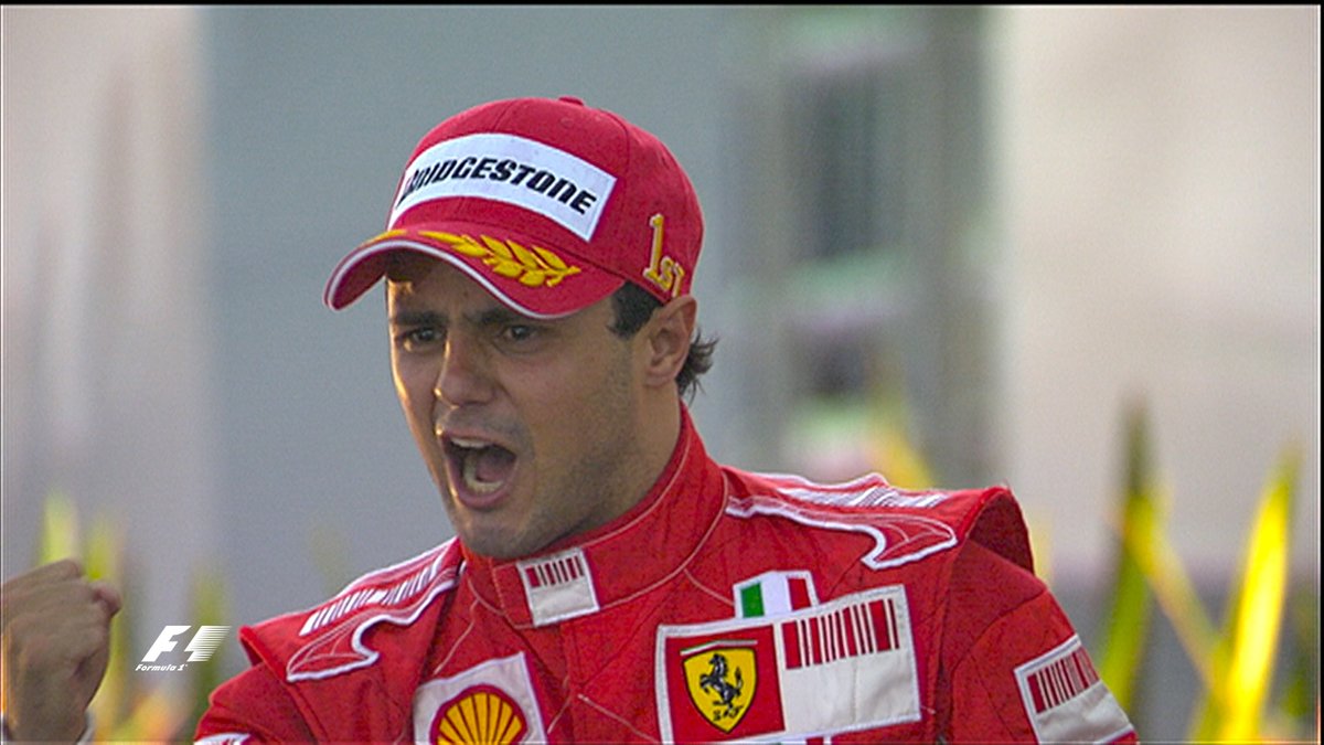 Di quel 2008, infatti, Massa porta sulla pelle ben sei delle sue 11 vittorie iridate. Cinque condensate in poco più di metà stagione: fra il Bahrein ad aprile e il Belgio a inizio settembre. Era, quella, la Ferrari migliore dell’epoca post-Schumacher. Una Rossa capace di nascere competitiva e di svilupparsi seguendo il ritmo folle imposto dallo sviluppo tecnico richiesto da una stagione iridata. Poi venne Singapore. Prima gara sul circuito cittadino della città-stato asiatica bardata a festa e piena di luce per il primo GP in notturna della storia dei Gran Premi. E Massa, perfetto: pole position e inizio gara all’arrembaggio, cioè al comando. Fino a quel pit-stop: uno dei più sfortunati della storia Ferrari, ma probabilmente dell’intera F1. Impossibile dimenticare quel tubo del rifornimento rimasto agganciato alla Ferrari dopo il pit-stop. E Felipe, ignaro, via! Ripartito, poi bloccato in fretta e furia a fine della corsia box visto che da quel tubo stracciato e penzolante dalla Ferrari come una lunga coda sprizzava carburante, con tutti i rischi che un pericolo del genere può comportare in una corsia box affollata di monoposto con parti meccaniche a centinaia di gradi di temperatura. Finì tutto bene: nessuno prese fuoco. Ma le speranze di vittoria o comunque di punti preziosi per il povero Massa congelarono istantaneamente.