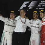 Abu Dhabi, ultimo round del Mondiale più lungo nella storia della F1: primo alla bandiera a scacchi, Lewis Hamilton, con Nico Rosberg Campione 2016,