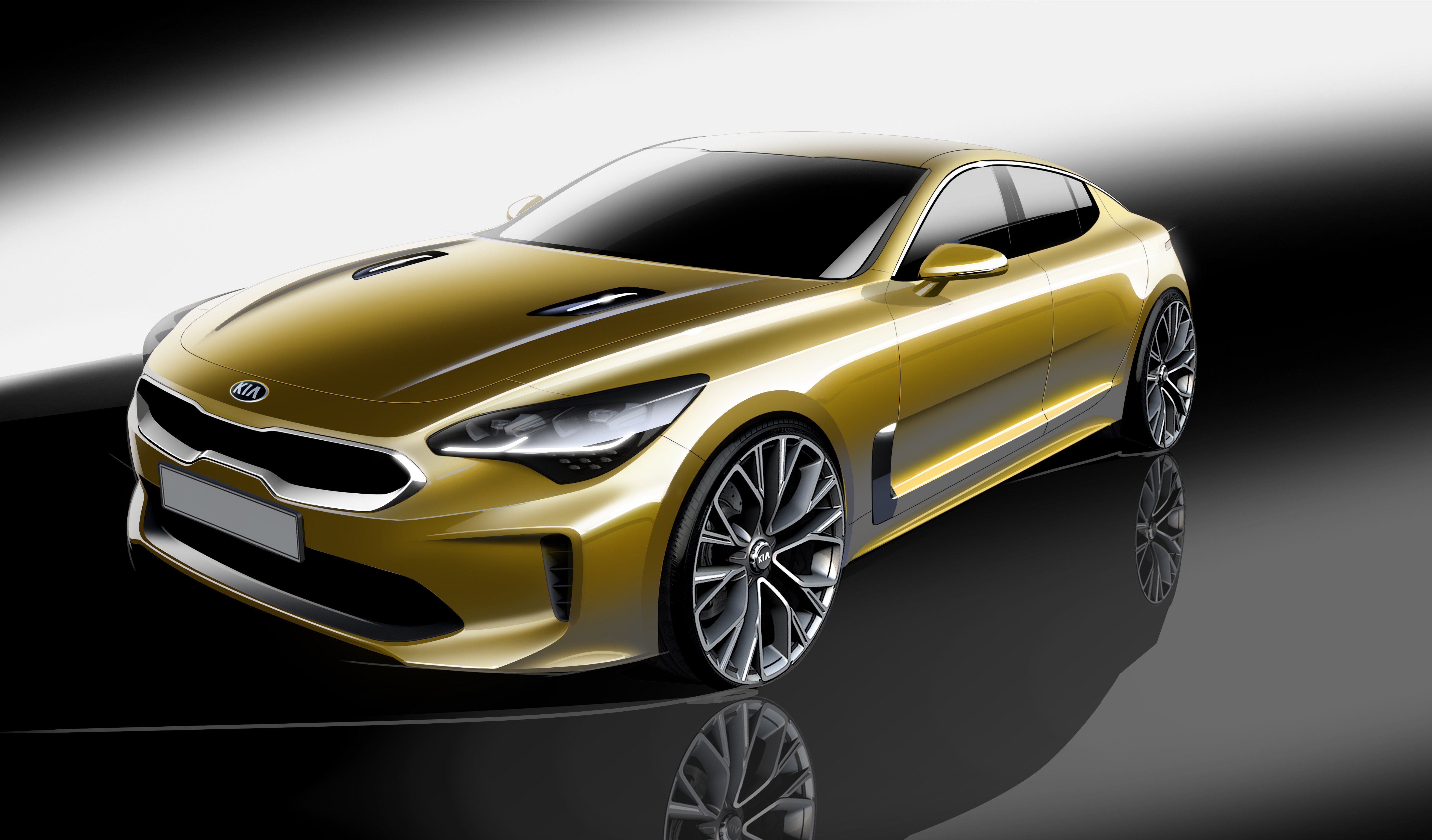 glie lo spirito delle classiche granturismo, vetture sportive ed eleganti pensate per muoversi con classe, velocemente e con uno straordinario piacere di guida. Su questa traccia in ogni fase della progettazione e dello sviluppo i tecnici Kia hanno lavorato a una gran turismo dal design unico, spaziosa e con caratteristiche dinamiche entusiasmanti grazie anche alla trazione posteriore o integrale. Nel passaggio dal concept alla vettura “reale” il modello ha assunto la denominazione Stinger che riprende quella utilizzata dal prototipo sportivo GT4 Stinger, esposto al Salone di Detroit 2014 di cui riprende l’anima prestazionale e il gusto della raffinatezza tecnologica.