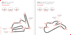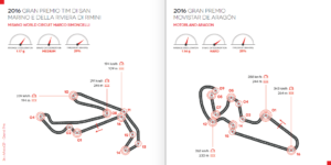 la classe regina delle competizioni moto, e lo confermano i 28 titoli Mondiali vinti nella categoria 500/MotoGP. Brembo ha raccolto le infografiche dei 18 GP della stagione 2016 di Moto GP, con i valori più significativi dell’impiego del sistema frenante in gara, le singole frenate più dure e alcune curiosità sui circuiti del Mondiale che rimane per Brembo il più importante banco di prova per le proprie innovazioni e tecnologie applicate alle moto. La tensione continua da parte di Brembo verso l’innovazione e la performance ha portato 22 piloti su 22 della MotoGP, nel corso della scorsa stagione, a scegliere di affidare le proprie vite e le proprie possibilità di vittoria ai freni Brembo. Allo stesso modo e per gli stessi motivi, ogni giorno milioni di motociclisti affidano le proprie frenate e la propria sicurezza ai freni Brembo sulle strade di tutto il mondo. Buona lettura
