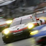he Ford driver under pressure before having to back off over the final laps, allowing Muller to win by nearly three seconds. The Porsche driver was then pushed hard by James Calado in the Risi Competizione Ferrari 488 GTE, but held on to take the runner-up spot by just 0.091s. The Alegra Motorsports Porsche team claimed a surprise GT Daytona class victory with Michael Christensen, Daniel Morad, Jesse Lazare and father and son Carlos and Michael de Quesada. They moved into contention in the closing stages before factory driver Christensen moved the car into the lead. The Dane crossed the line just a couple of tenths clear of the Land Motorsport Audi R8 LMS driven by Christopher Mies, Jules Gounon, Connor De Phillippi and Jeffrey Schmidt.