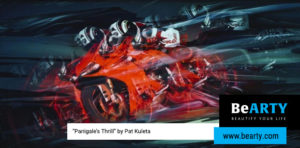 “È con piacere che BeArty offre la possibilità al suo network di artisti di lavorare ispirati da un brand iconico come quello di Ducati, offrendo così agli amanti delle Rosse di Borgo Panigale di ammirare la propria passione attraverso il linguaggio dell’arte”, dice il fondatore e CEO di BeArty, Partick Ashworth.Gli artisti che hanno realizzato la collezione sono stati scelti dopo una selezione, in cui avevano presentato opere ispirate alla tecnologia d’avanguardia che caratterizza la Casa di Borgo Panigale. Tutte le opere d’arte della collezione Ducati sono in vendita all’indirizzo www.BeArty.com/ducati-all.