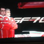 Niente piloti a sollevare il telo quest’anno per la Scuderia Ferrari, ma un garage che si apre e svela la monoposto 2017, la SF70H, con accanto Maurizio Arrivabene e Mattia Binotto sulla sinistra e, a destra, i tre piloti Sebastian Vettel, Kimi Raikkonen e Antonio Giovinazzi.