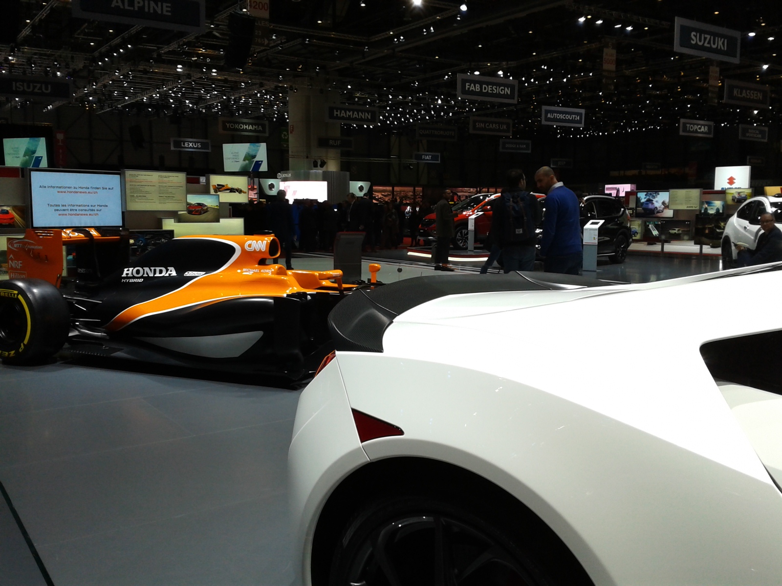 Voi pagherete 16 franchi per il biglietto d’ingresso (oltre ovviamente alle spese per giungere a destinazione): pur potendo godere dell’ospitalità di qualunque Casa, abbiamo voluto fare un esperimento e sappiate che due panini e due bibite costano 22,10 franchi (ovvero 22,10 euro, come da cambio applicato 1 a 1, con tanto di cartello esposto alle casse dei bar e come da scontrino qui a lato). Infine, non sappiamo se nel frattempo la cosa sia cambiata (a quanto ci dicono no), ma il 7 il padiglione TAG Heuer era… drammaticamente vuoto! E onestamente da un marchio del genere e da quanto annunciato dagli organizzatori ci si aspettava di più, visti tutti i trascorsi nel motorsport si può fare molto ma molto di più.