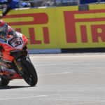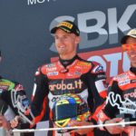 Gara 2 del WorldSBK ha visto trionfare, per la prima volta in questa stagione, una Ducati, quella di Chaz Davies (Aruba.it Racing – Ducati). Nonostante una partenza dalla nona posizione in griglia, al secondo giro Jonathan Rea (Kawasaki Racing Team) ha già risalito la china della corsa portandosi in prima posizione. Alex Lowes (Pata Yamaha Official WorldSBK Team), che scattava dalla pole, andrà lungo all’undicesimo giro per poi terminare in tredicesima posizione. Nel corso del tredicesimo giro Chaz Davies supera Rea che scende in seconda posizione tallonato dall’altro ducatista, Marco Melandri (Aruba.it Racing – Ducati). Il gruppetto dei primi tre è molto compatto ed è racchiuso in meno di 5 decimi di distacco. Alla fine del quindicesimo giro anche Melandri riesce temporaneamente a superare Rea portandosi alle spalle del compagno di squadra ma poche curve dopo il nordirlandese si riprende la posizione persa e si lancia alla rincorsa del gallese della Ducati. Nonostante ripetuti tentativi di sorpasso, nel corso del giro finale Davies riesce a difendere la posizione e a tagliare il traguardo per primo davanti al Campione in carica, secondo, e a Marco Melandri, ancora una volta sul podio.