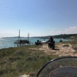 Il primo giorno si è snodato principalmente su percorsi dell’entroterra boscoso e collinare, attraversando la Foresta Umbra, straordinaria macchia mediterranea, così fitta da rendere i fari della moto preziosi anche di giorno. Sterrati scorrevoli prima, poi verdi pascoli con le immancabili mucche, quindi il letto secco del Romandato, fiume che ha scavato la sua pista nella bianca roccia carsica a formare un canyon suggestivo, oltre a qualche passaggio più tecnico nella boscaglia con le tracce tutte da scoprire. Lungo questi 160 km, circa i partecipanti hanno provato tutte le vere emozioni dell’Adventouring.