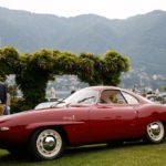 Questa coupé è nientemeno che il primo progetto per la versione stradale della “BAT Mobile” (Berlinetta Aerodinamica Tecnica), uno dei tre arditi studi aerodinamici sviluppati tra il 1953 e il 1955 dalla collaborazione tra Bertone e Alfa Romeo. Erede della fortunata serie di prototipi BAT, l’Alfa Romeo Giulietta SS Prototipo del ’57 è l’anello di congiunzione tra queste dream car, delle quali mantiene proporzioni e soluzioni avveniristiche, e la Sprint Speciale di serie, che dopo una revisione generale ed una semplificazione del progetto fu messa in produzione nel 1959. Come già per i precedenti prototipi, anche questa carrozzeria in metallo leggero nacque dall’estro dell’allora principale designer di Bertone, Franco Scaglione, considerato uno dei migliori progettisti di sempre dagli addetti del settore. La Berlinetta, che nel 2017 compie 60 anni, è presentata in Concorso a Villa d’Este dalla figlia di Franco, Giovanna Scaglione.