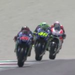 Viñales parte bene ed è dietro al Dottore. Tra i due ci saranno molti sorpassi con Lorenzo che sfrutta il duello tra i due compagni di box. Al quinto giro è già davanti. Rossi domina nei primi passaggi lotta con Lorenzo e il compagno di box ma poi scivola al terzo posto per subire il ritorno delle moto italiane e finirà come quarto a 1,3s dal vincitore. Andrea Dovizioso vuole essere tra i protagonisti e, dopo la bagarre iniziale si dà il cambio con il collega all’inseguimento delle due Yamaha. Ha la meglio sulla numero 46 e quando mancano 15 giri è sotto agli scarichi di Viñales. Il duello tra i due si accende al 13° giro quando il forlivese, in rettilineo, mette la sua Ducati davanti alla M1 #25 e prova a fare il vuoto. Ci riuscirà con un passo elevato e costante infliggendo 1,281s a Viñales sotto la bandiera a scacchi. È la terza vittoria di ‘Desmo Dovi’ in MotoGP ora uomo di punta del team; un risultato che gli consente di raggiungere il secondo posto iridato ai danni di Rossi.