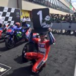 Michele Pirro già dall’avvio si stacca dalla vetta e chiude 9° dietro a Lorenzo che, dopo aver emozionato con la leadership della corsa nei primi giri, perde contatto con i migliori e taglierà il traguardo 8° alle spalle di Johann Zarco (Monster Yamaha Tech 3). È il GP di Petrucci che a 14 giri dalla fine segna il confine tra i primi quattro e il resto della corsa. L’emozionate gara del pilota di Terni inizia adesso e, dopo aver raggiunto la scia di Rossi, ha la meglio sul Dottore in rettilineo mettendo nel mirino la Yamaha di Viñales che sbaglia e lascia aperta una breccia e viene infilato. Il leader della classe risponde subito e fino alla fine riesce a tenere dietro la Ducati #9. Per Petrucci sarà una grande gioia e la conferma delle sue grandi doti come pilota. Secondo podio in MotoGP per il ducatista satellite dopo Silverstone 2015.