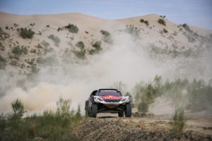 Sébastien Loeb / Daniel Elena fanno segnare il miglior tempo della tappa 8 del #SilkWayRally di oggi, con 5’16” di vantaggio sui compagni di squadra Cyril Despres / David Castera. Le due coppie del ‘Dream Team’ Peugeot aumentano il loro vantaggio in testa alla classifica generale provvisoria: la Peugeot DKR Maxi del nove volte Campione del Mondo Rally WRC ha ora 1h08’41” di vantaggio. Giunti a metà del percorso del Silk Way Rally, domani i concorrenti potranno beneficiare di una giornata di riposo a Urumqi, in Cina. La Peugeot DKR Maxi da prova di se agli ingegneri di Peugeot Sport. In questa prima settimana di corsa – la sua prima uscita nelle competizioni – la nuova auto ha dimostrato il suo potenziale per potere affrontare il rally raid più difficile del mondo.