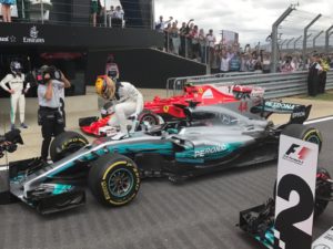 che ha dominato la gara di casa, vincendola per la 5° volta, eguagliando il record di Jim Clark e Alain Prost, la 4° consecutiva, e riducendo il gap dal leader Sebastian Vettel da 20 a un solo punto, a metà stagione, con il tedesco della Ferrari che ha chiuso 7° in un finale incredibile che ha visto entrambe le SF70-H vittime di forature nei due giri finali che le hanno costrette a dei pitstop al cardiopalma.