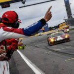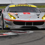 pneumatici usati fino a metà corsa limitandosi a gestire il vantaggio nella seconda metà di gara. Pier Guidi è stato autore di un doppio stint di gran livello, imitato nei 90 minuti successivi da Calado. Le Porsche, per contro, sono sembrate in maggiore difficoltà e questo ha permesso alla 488 GTE numero 51 di trovarsi solidamente al comando a 80 minuti dal termine. L’auto gemella, proprio quando stava recuperando forte degli ottimi tempi di Rigon e del suo occasionale compagno Toni Vilander, è stata di nuovo fermata dal cambio per la cui sistemazione sono stati persi altri due giri. La vettura ha concluso ottava e ultima di classe.