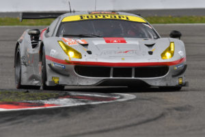 pneumatici usati fino a metà corsa limitandosi a gestire il vantaggio nella seconda metà di gara. Pier Guidi è stato autore di un doppio stint di gran livello, imitato nei 90 minuti successivi da Calado. Le Porsche, per contro, sono sembrate in maggiore difficoltà e questo ha permesso alla 488 GTE numero 51 di trovarsi solidamente al comando a 80 minuti dal termine. L’auto gemella, proprio quando stava recuperando forte degli ottimi tempi di Rigon e del suo occasionale compagno Toni Vilander, è stata di nuovo fermata dal cambio per la cui sistemazione sono stati persi altri due giri. La vettura ha concluso ottava e ultima di classe.