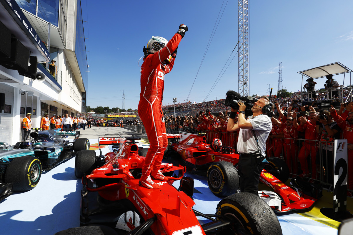 Doppietta #Ferrari nel GP di #Ungheria, di cui #Pirelli è title sponsor, con Sebastian #Vettel che conquista la vittoria in una gara dove quasi tutti i piloti hanno adottato una strategia a una sosta da supersoft a soft. Anche domenica la temperatura asfalto ha superato i 50°C, ma nonostante ciò usura e degrado