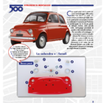I fascicoli presenti in ogni uscita sono realizzati dai massimi esperti italiani del settore e suddivisi in sezioni dedicate alle istruzioni di montaggio e alla storia della 500. Dalla fase progettuale alla produzione in serie, dall’evoluzione delle versioni alle elaborazioni dei carrozzieri, attraverso gli aneddoti, le foto dell’Archivio Fiat, i manifesti pubblicitari, ecc. Tutto un mondo di informazioni e curiosità intorno alla più celebre utilitaria di tutti i tempi, la Fiat 500. Istruzioni di montaggio complete, dettagliate e riccamente illustrate, elencano di volta in volta i componenti allegati ad ogni uscita e ti spiegano facilmente come assemblarli passo a passo. Creerete con le vostre mani un inedito ed esclusivo modello di grandi dimensioni, da ammirare in ogni suo sorprendente dettaglio.