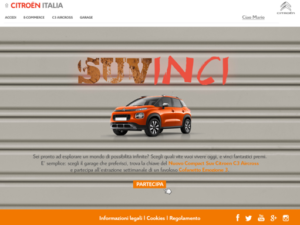 Proprio per sottolineare le endless possibilities della sua nuova proposta, Citroën Italia propone fino al 24 settembre sul sito www.c3aircross.it un divertente contest, un “minigame punta e clicca”, dove conta solo un briciolo di fortuna per vincere interessanti premi di … tappa ed un esclusivo premio finale. Il “terreno di gioco” che si presenta ai giocatori, dopo la necessaria registrazione alla sezione “concorso” del sito, è costituito da quattro garage virtuali, ognuno con una ambientazione ben definita e che sottolinea le qualità della vettura: SUVigoroso (pensato per chi ha spirito sportivo), SUViaggiatore (per l’amante dei viaggi), SUVisionario (per chi si sente un po’ artista), SUVagabondo, per chi è un po’ figlio del mondo.