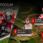 Adrenalina pura con il pilota Ducati che conquista la vittoria stagionale e la seconda piazza iridata proprio alle spalle dello spagnolo. Terzo Dani Pedrosa. Domenica no per le Yamaha, solo 6° e 7°.