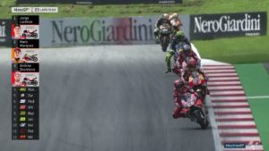 Valentino Rossi parte bene ed è quarto. Al via prova ad attaccare Dovizioso che si difende. Resta in quella posizione prima di scivolare al 7° posto a causa di un errore alla curva 1. La prova del Dottore si chiuderà in quella posizione dietro al compagno di box Maverick Viñales che incassa 10 punti iridati ma che non sono abbastanza per difendere la piazza d’onore in classifica generale. Ora è terzo a 8 punti da Dovizioso. Per Petrucci una partenza da dimenticare e la perdita di molte posizioni, fino al ritiro a causa di un problema alla moto. Andrea Iannone chiude 11° dopo una gara costante alle spalle dell’ottimo Mikka Kallio (Red Bull KTM Factory), 10° alla bandiera a scacchi che porta per la seconda volta la moto austriaca nella top 10. Prossimo appuntamento, il GP d’Inghilterra da venerdì 25 agosto a Silverstone.