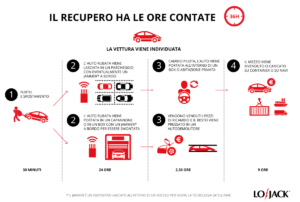 “In Italia stiamo assistendo a una continua evoluzione del fenomeno furti”, dice Maurizio Iperti, AD di LoJack Italia, “con una decisa accelerazione delle attività che seguono l’atto criminale. In alcuni casi, soprattutto in Regioni come Puglia e Campania, dalla sottrazione del veicolo al suo totale smembramento trascorrono pochissime ore, grazie a centrali di smontaggio in cui operano mani esperte. Secondo nostre elaborazioni, in alcune zone del nostro Paese trascorse 36 ore dal furto le possibilità di rinvenire la vettura rubata si riducono drasticamente. E’ quindi oggi ancor più strategico dotarsi di strumenti di supporto efficaci, in grado di contrastare con tempestività queste attività criminali”.