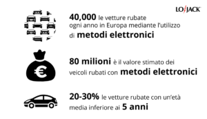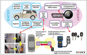 Alle tradizionali e rudimentali tecniche “hardware based” utilizzate in passato per rubare veicoli (rottura del finestrino, forzatura della serratura di una delle portiere o del bagagliaio, furto delle chiavi in ristoranti e appartamenti), si sono già da qualche anno affiancate tecniche e modalità criminali che utilizzano tecnologie innovative e meno rischiose. Si tratta di un trend più evidente in mercati automotive maturi, ma in forte diffusione anche nel nostro Paese, dove in alcune aree arriva a incidere sul 20% dei furti d’auto.
