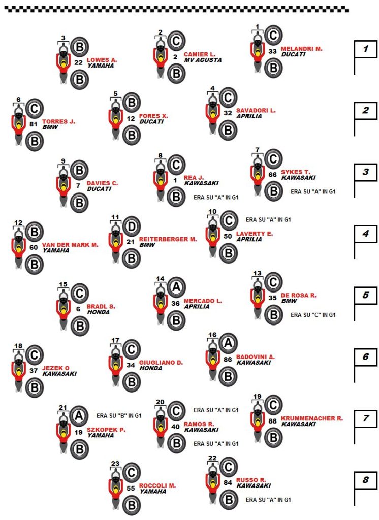 In Gara 2 il gallese della Ducati ha preceduto sul traguardo l’attuale leader di Campionato Jonathan Rea e il compagno di squadra Marco Melandri. Nonostante due secondi posti ottenuti nel weekend, il Campione del Mondo in carica della casa di Akashi ha un vantaggio di oltre 105 punti su Davies e quindi ha limitato i danni. Bene anche le gare delle altre categorie: nel WorldSSP a trionfare con la Yamaha del team Kallio Racing è stato il sudafricano Sheridan Morais mentre nel Campionato Mondiale Supersport 300 ad avere la meglio è stato l’italiano Alfonso Coppola sulla Yamaha YZF-R3 del team SK Racing. Infine successo di Michael Ruben Rinaldi su Ducati nel Campionato Europeo FIM Superstock 1000.