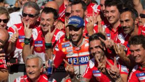 do per il pilota del Ducati Team, culminato con la leadership in classifica dove è a 183 punti. Dopo delle qualifiche non brillanti, Dovizioso inizia la sua prova dall’ultima casella della seconda fila. Dopo i primi passaggi in quinta posizione, inizia la grande rimonta vincendo tutti duelli prima di raggiungere il comando. Nei giri finali Maverick Viñales prova a farsi sotto ma i metri di distanza tra la M1 e la DesmosediciGP restano gli stessi, a favore del romagnolo. Grazie al ritiro di Marc Marquez, ‘Desmo Dovi’ è il nuovo leader del campionato e tra due settimane arriva alla gara di casa, a Misano, con grandissima fiducia e conscio della grande sua competitività in questo 2017.