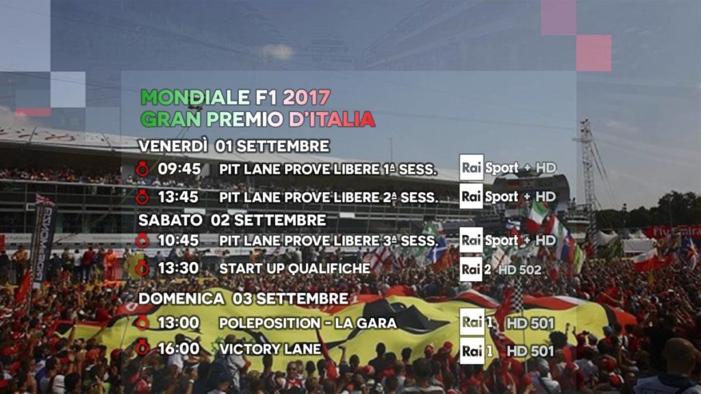 La #F1 entra nel tempio della velocità: da giovedì 31 agosto fino a domenica 3 settembre a #Monza è di scena il GP d’Italia, tutto in diretta su #Sky Sport F1 HD, Sky Sport 1 HD, Sky Sport Mix HD e sui 5 canali del mosaico interattivo in HD. E in questo weekend anche su mamma Rai, come di consueto per l’appuntamento di casa. Uno spettacolo in pista e fuori, con la “marea rossa” pronta a riempire l’Autodromo brianzolo, dove la Ferrari si presenta da leader, mentre Hamilton cerca il sorpasso su una pista cara (e sulla carta favorevole) alla Mercedes. Anche se come abbiamo visto in Belgio le previsioni non sempre si avverano…