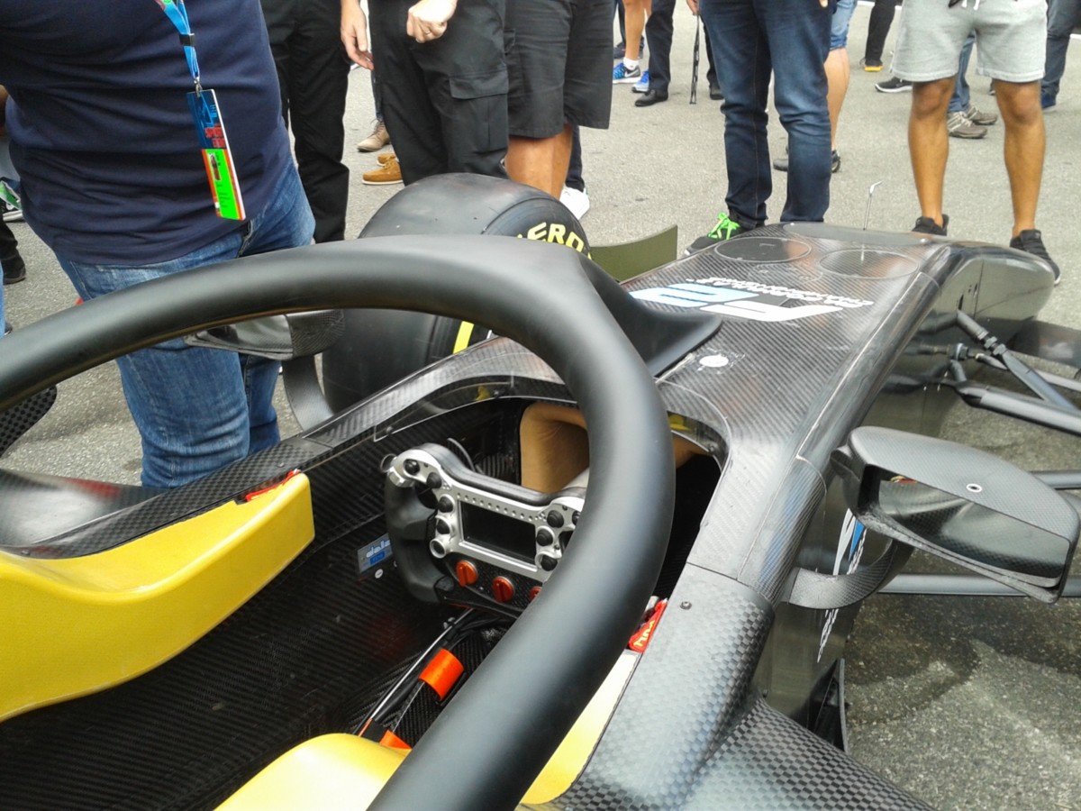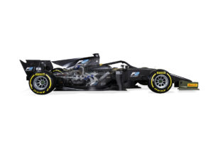 The new car, which complies with the latest F1 safety standards, features architecture typical of a modern F1 car and a 3.4 litre turbo-charged Mecachrome engine, which delivers 620 HP at 8,750 rpm. The design philosophy was to refresh the car to mirror the latest updates in F1 design, and to maintain a long tradition of wheel to wheel racing. The safety updates include changes to marshalling such as the Virtual Safety Car (VSC), Drag Reduction System (DRS) and upgraded electronics, and most notably is the first new car to be revealed featuring the Halo system, which was incorporated at the final stage of the design process.