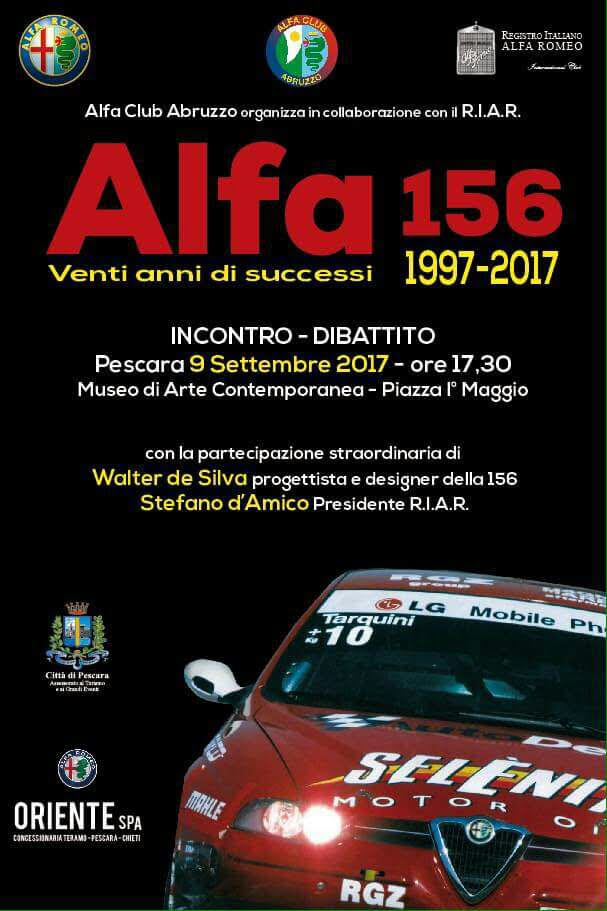 Questa e molte altre storie saranno raccontate il prossimo 9 settembre dallo stesso Walter de Silva che al convegno di Pescara con il Presidente del RIAR Stefano d’Amico svelerà tutti i retroscena della genesi di una delle Alfa Romeo più vincenti, sui mercati e sulle piste, la 156. Organizzato dall’Alfa Club Abruzzo, in collaborazione con il RIAR, l’incontro-dibattito si intitola: “Alfa 156 – Venti anni di successi 1997-2017“.