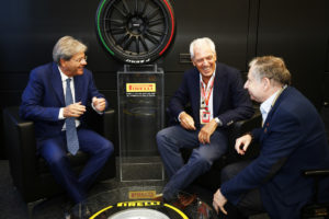nelle immagini accanto al nuovo P Zero stradale ‘Colorato’, “Pirelli Colored Edition”, nell’inedita versione con i colori del tricolore. Il P Zero ‘colorato’ è in vendita sul mercato nelle diverse versioni di colore che richiamano anche i colori dei pneumatici P Zero F1. All’incontro era presente anche il presidente della FIA Jean Todt.