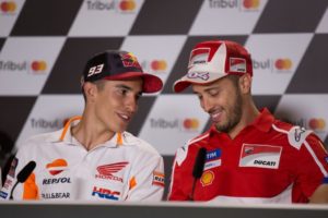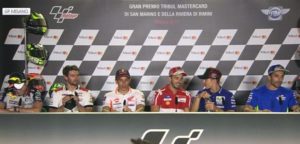 Ai piloti della classe regina è stato chiesto se il campionato di Rossi sia chiuso prevedendo un suo rientro tra qualche gara. Tutti hanno espresso il fatto che la stagione si è rivelata ricca di sorprese, in cinque stanno lottando per il titolo e nulla può dirsi chiuso fino alla fine della stagione. Inoltre hanno anche commentato il fatto che gli infortuni, come quello di Rossi, fanno parte dell’essere pilota attento a unire alla pista anche altre specialità. Da domani la parola passa alla pista con le prime prove libere.