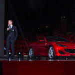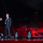 La vettura è arrivata da dietro uno schermo, come per magia, sullo sfondo del paese e del suo promontorio dominati dal colore rosso con il simbolo del Cavallino Rampante proiettato sul Castello Brown, simbolo della cittadina ligure. Dopo la cena di gala in piazzetta, con musica e intrattenimento, gli ospiti sono stati invitati a tornare sulla piattaforma galleggiante per un cocktail di saluto e un DJ set accanto alla Ferrari Portofino di cui hanno continuato ad apprezzare le raffinate finiture, il tetto retraibile e le numerose dotazioni tecnologiche che la rendono unica nella sua categoria.