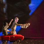 La parte centrale dello spettacolo ha raccontato la storia del costume e della società degli ultimi 70 anni, che è indissolubilmente intrecciata con quella della Ferrari, da sempre un’icona di stile nel mondo. Sul palcoscenico si sono dunque alternate la 125 S, la prima vettura realizzata, la 250 California degli Anni 50, la 250 GTO del 1962, leggendaria anche nelle vittorie in pista, la 512 BB, la mitica Testarossa, diventata ancora più celebre grazie a videogame e telefilm americani, la F50, la Enzo e LaFerrari Aperta, vettura iconica dei 70 anni Ferrari.