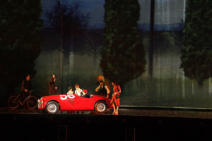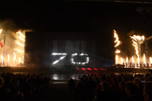 La parte centrale dello spettacolo ha raccontato la storia del costume e della società degli ultimi 70 anni, che è indissolubilmente intrecciata con quella della Ferrari, da sempre un’icona di stile nel mondo. Sul palcoscenico si sono dunque alternate la 125 S, la prima vettura realizzata, la 250 California degli Anni 50, la 250 GTO del 1962, leggendaria anche nelle vittorie in pista, la 512 BB, la mitica Testarossa, diventata ancora più celebre grazie a videogame e telefilm americani, la F50, la Enzo e LaFerrari Aperta, vettura iconica dei 70 anni Ferrari.