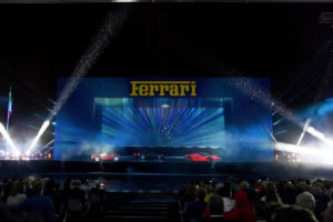Spazio anche alla passione con un monologo dell’attore irlandese Liam Cunningham, uno dei protagonisti della seria Tv “Il Trono di Spade”, che ha portato alla parte dello spettacolo dedicata alle corse, di Formula 1 ma non solo, e al saluto ai campioni della Scuderia di ogni tempo. Poi sono saliti sul palco Kimi Raikkonen e Sebastian Vettel. Infine il video tributo al grande Michael Schumacher, che continua da anni una lunga battaglia per la vita. Lo show si è concluso con uno spettacolare pit stop virtuale cui ha partecipato con una Ferrari di Formula 1 anche il pilota Marc Gené e con un crescendo di emozioni offe