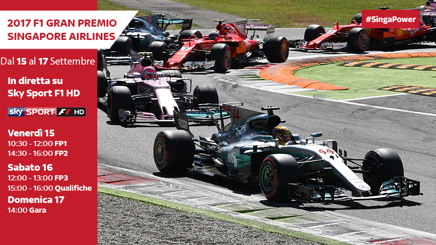 La #F1 arriva sul circuito di Marina Bay: da oggi, giovedì 14 agosto, fino a domenica 17 settembre, è di scena il GP di #Singapore, tutto in diretta su #Sky Sport F1 HD e sui 5 canali del mosaico interattivo in HD e anche sulla Rai.