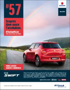 In questo weekend debutterà anche SWIFT 1.0 BOOSTERJET HYBRID 2WD e si potrà ancora approfittare della promozione lancio, che vede New SWIFT COOL Launch Edition a 12.650€ IVA inclusa (I.P.T. e vernice metallizzata escluse) in un allestimento che comprende tecnologia e infotainment, stile e sportività, sicurezza e comfort. Appena giunta sul mercato, SWIFT si è imposta con un mix vincente di design, sportività, tecnologia e connettività, oltre che per un rapporto allestimento/prezzo imbattibile con “tutto di serie, senza sorprese”, come da tradizione Suzuki.