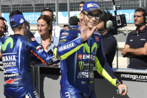 Valentino Rossi: “È un po’ una sorpresa anche per me perché sinceramente non sapevo cosa aspettarmi. La gamba migliora tanto giorno per giorno e sulla moto riesco a stare bene. Ho un pochino di dolore ma guido bene, posso spostarmi bene sulle chicane; quando ho provato a Misano qualche giorno fa ho detto, ‘si può fare’. Però avevo ancora tanto male, invece adesso pian piano migliora. È una cosa importante. La gara sarà la cosa più difficile perché è sempre dura. Speriamo di lavorare bene, cercare di far meglio e scegliere la gomma giusta. La pole non l’ho vista. Ho visto che ero 2° e poi mi ha sorpassato Lorenzo. Partire in prima fila è una bella sorpresa, un po’ per tutto il nostro team. La lunghezza della corsa sarà un fattore importante visto che la gomma da gara è un po’ più dura e la moto un po’ più difficile da guidare; c’è un po’ più stress, insomma. Però spero di non avere troppo male e di riuscire a guidare bene”.