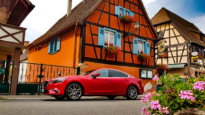 Le autostrade francesi, più trafficate di quelle svizzere, ci hanno permesso di mettere alla prova un altro dispositivo della berlina. Viaggiare senza il cruise control ormai è pura follia, con i limiti di velocità gestiti dai tutor il viaggio sarebbe impegnativo. Mazda6 aggiunge a questo dispositivo anche il controllo adattativo della velocità di crociera. Siamo rimasti letteralmente stupefatti ed entusiasti di questa caratteristica della vettura. Quando davanti a noi si parava un’altra auto, automaticamente la velocità veniva ridotta per mantenere la distanza che avevamo pre-impostato. Ottimo per viaggiare in tutta sicurezza. L’ultimo tratto del viaggio, quello delle Ardenne, è stato affrontato senza problemi di sorta. Anche ad alte velocità, la vettura dimostra stabilità e trasmette sicurezza, sia in frenata sia in accelerazione. Unica pecca, una leggera vibrazione sul volante tra i 120 e i 130 km/h, ma non abbiamo avuto modo di capire se fosse legato a un problema alle gomme (magari di una prova precedente). Anche sul bagnato la guida si è dimostrata sicura e precisa. Alla fine del viaggio di andata, nonostante l’ultimo tratto affrontato ad alte velocità, il consumo si è tenuto sui 6,2 l/100 km, davvero straordinario per una macchina di questa potenza e cilindrata.