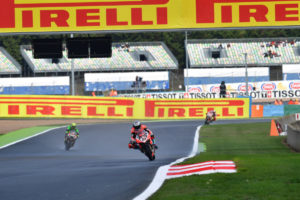 consecutivo. Il nordirlandese si è dimostrato forte fin dalle prove libere del venerdì e nella mattinata di oggi è riuscito a conquistare sotto l’acqua la Superpole che gli ha permesso di scattare dalla prima posizione in griglia e di vincere una gara condotta in testa dall’inizio alla fine. A causa della pioggia caduta in modo copioso nel corso della notte e nelle prime ore della mattina la gara è stata dichiarata bagnata e tutti i piloti hanno utilizzato pneumatici da bagnato Pirelli DIABLO Rain. All’anteriore tutti hanno montato pneumatici di gamma, al posteriore invece alcuni si sono affidati alla soluzione di gamma altri hanno preferito quella di sviluppo.